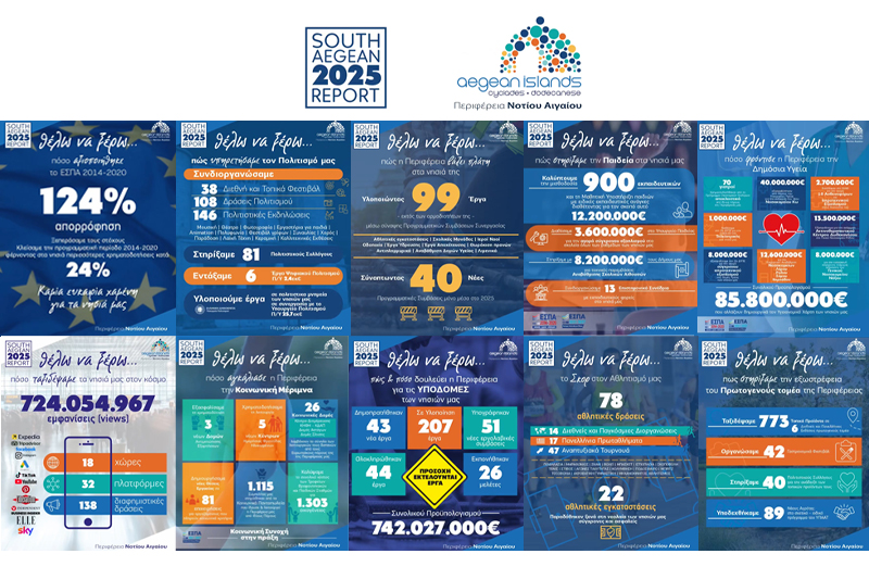Κλείνοντας, τόνισε ότι το Νότιο Αιγαίο δεν αποτελεί μόνο κορυφαίο τουριστικό προορισμό, αλλά μια Περιφέρεια που πρωταγωνιστεί σε πολλαπλά επίπεδα ανάπτυξης και κοινωνικής πολιτικής, διαμηνύοντας ότι η πορεία θα συνεχιστεί με στόχο τη διαρκή ενίσχυση της ταυτότητας και της προοπτικής των νησιών.