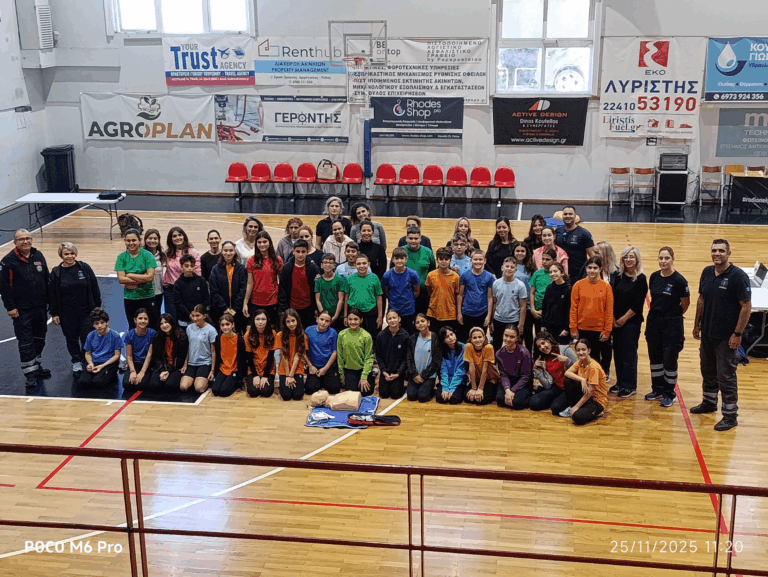 Το Σωματείο Εργαζομένων ΕΚΑΒ Ρόδου, σε συνεργασία με το Ροδίων Παιδεία, πραγματοποίησε την Τρίτη 25 Νοεμβρίου 2025 μία ιδιαίτερα χρήσιμη, βιωματική και διαδραστική εκπαίδευση για τους μαθητές της ΣΤ’ Δημοτικού, καθώς και για τους γονείς τους.