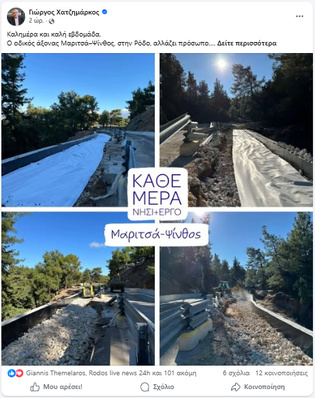 Το έργο στον άξονα Μαριτσά–Ψίνθος δεν αφορά μόνο την άσφαλτο ή την τεχνική βελτίωση του δρόμου. Αφορά την ασφάλεια των μετακινήσεων, τη λειτουργικότητα του δικτύου και, τελικά, την ποιότητα ζωής στο νησί. Σε αυτό το πλαίσιο, το μήνυμα είναι σαφές: κάθε μέρα που περνά με παραγωγή έργου είναι χρόνος κερδισμένος για τον τόπο, με τη συνέχιση των παρεμβάσεων να στηρίζεται σταθερά στη δουλειά και στη συλλογική προσπάθεια.