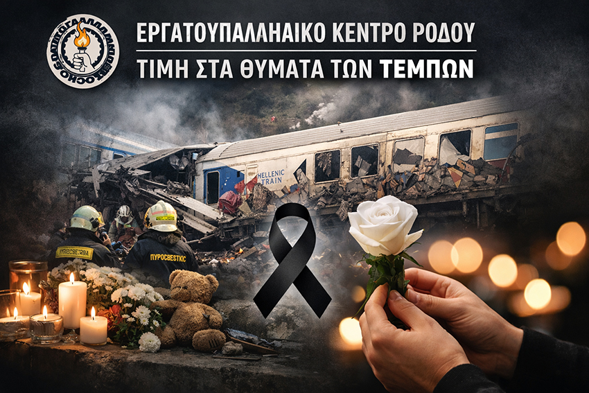 Στάση εργασίας το Σάββατο 28 Φεβρουαρίου, από τις 10:00 έως τις 14:00, αποφάσισε η Γενική Συνέλευση του Εργατοϋπαλληλικό Κέντρο Ρόδου, η οποία πραγματοποιήθηκε στις 18 Φεβρουαρίου, ως ελάχιστη πράξη τιμής και μνήμης προς τα θύματα της τραγωδίας στα Τέμπη.