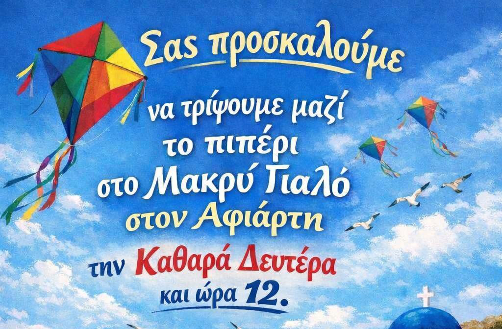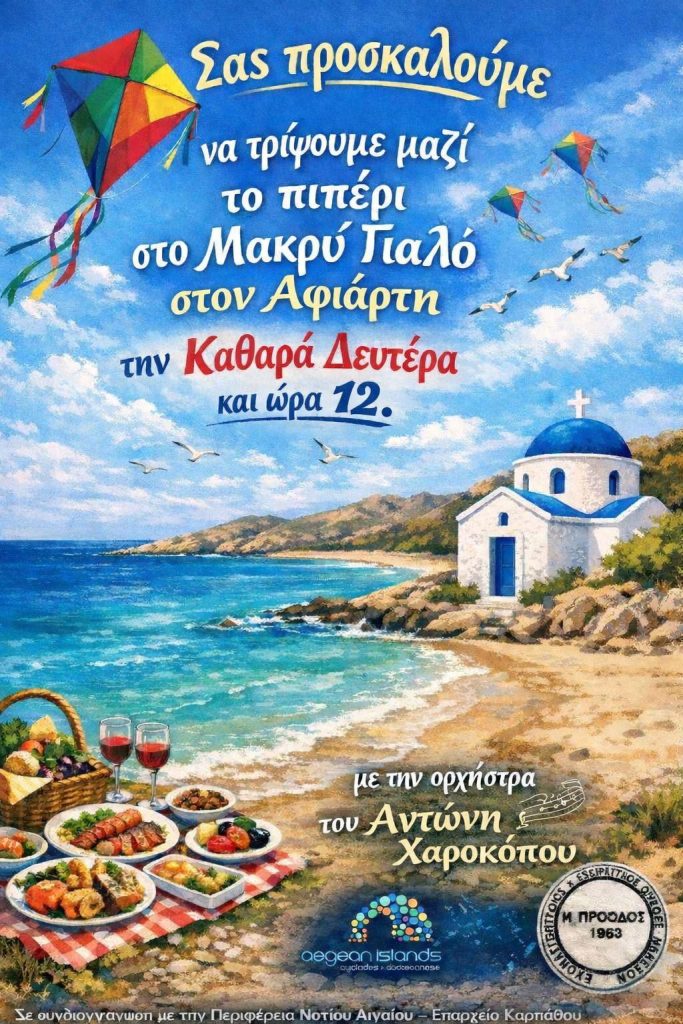 Η εκδήλωση θα πραγματοποιηθεί την Καθαρά Δευτέρα 23 Φεβρουαρίου 2026, στον Μακρύ Γιαλό, στον Αφιάρτη, με τη συμμετοχή τοπικών μουσικών και εθελοντών. Το πρόγραμμα περιλαμβάνει παραδοσιακά τραγούδια, κεράσματα και αυθεντικό αποκριάτικο γλέντι, σε ένα σκηνικό που συνδυάζει τη φυσική ομορφιά του τόπου με τη ζωντάνια της καρπαθιακής παράδοσης.