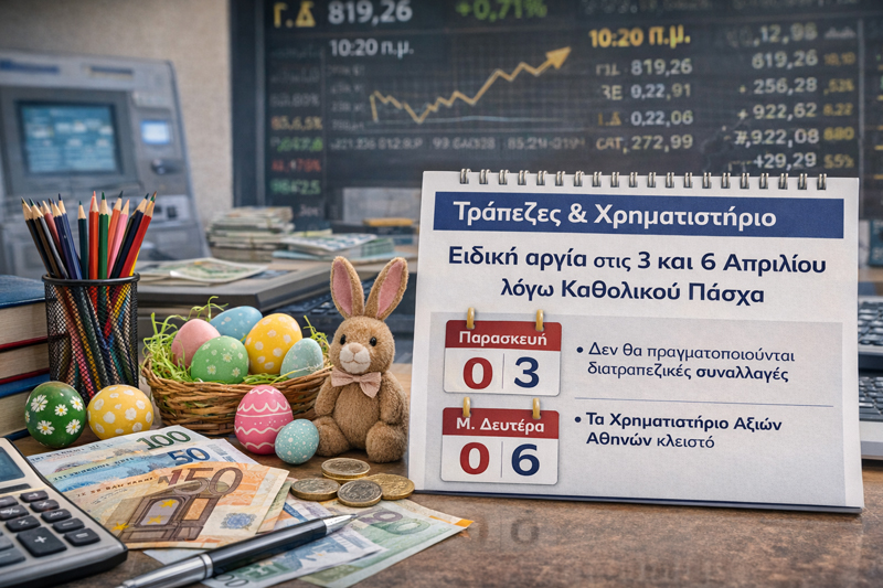Παράλληλα, κλειστό θα παραμείνει και το Χρηματιστήριο Αξιών Αθηνών τις ίδιες ημέρες, ακολουθώντας το ευρωπαϊκό πλαίσιο λειτουργίας των αγορών κατά την περίοδο του Καθολικού Πάσχα.