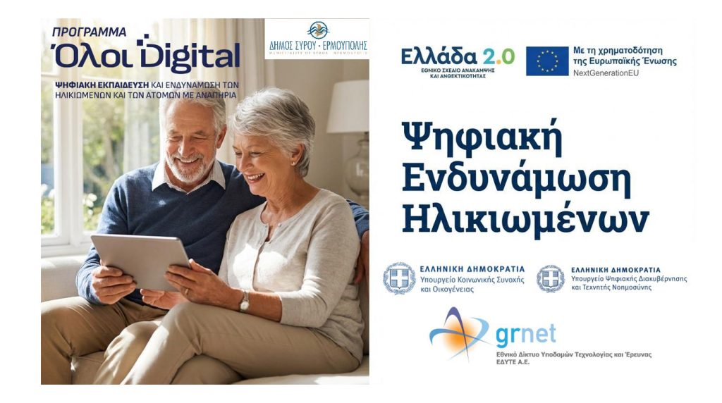 Ο Δήμος Σύρου – Ερμούπολης βρίσκεται στην ευχάριστη θέση να ανακοινώσει την επιτυχή έναρξη των εκπαιδευτικών τμημάτων του προγράμματος «Ψηφιακή Εκπαίδευση και Ενδυνάμωση Ηλικιωμένων».