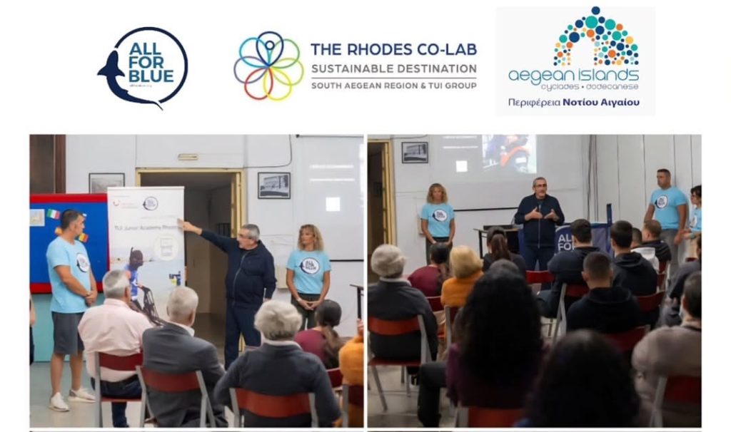 Μια ακόμη ουσιαστική περιβαλλοντική πρωτοβουλία πραγματοποιήθηκε στη Ρόδο, στο πλαίσιο της διαρκούς προσπάθειας για την προστασία του θαλάσσιου οικοσυστήματος και την καλλιέργεια οικολογικής συνείδησης στις νεότερες γενιές. Το απόγευμα της Τετάρτης 15 Οκτωβρίου 2025, η ομάδα της “All for Blue” βρέθηκε στο Εσπερινό Γυμνάσιο Ρόδου, όπου πραγματοποίησε εκπαιδευτικό σεμινάριο αφιερωμένο στη σημασία της μείωσης της θαλάσσιας ρύπανσης και της υπεύθυνης περιβαλλοντικής συμπεριφοράς.