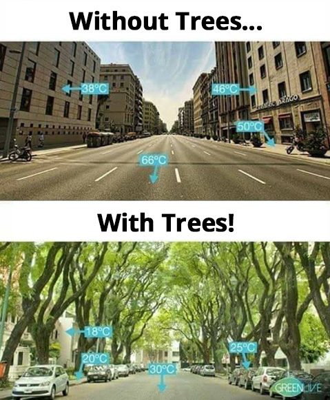 Tα δέντρα στις πόλεις παρέχουν πολυάριθμα περιβαλλοντικά, κοινωνικά και οικονομικά οφέλη, όπως η βελτίωση της ποιότητας του αέρα, η ρύθμιση της θερμοκρασίας, η μειωμένη χρήση ενέργειας, η διαχείριση όμβριων υδάτων, η απορρόφηση διοξειδίου του άνθρακα, η ψυχική ευημερία των κατοίκων, η αυξημένη βιοποικιλότητα και η άμβλυνση των επιπτώσεων της κλιματικής αλλαγής.