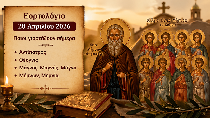 Σήμερα, Τρίτη 28 Απριλίου 2026, σύμφωνα με το εορτολόγιο της Ορθόδοξης Εκκλησίας, τιμάται η μνήμη των Αγίων Εννέα Μαρτύρων εν Κυζίκω.