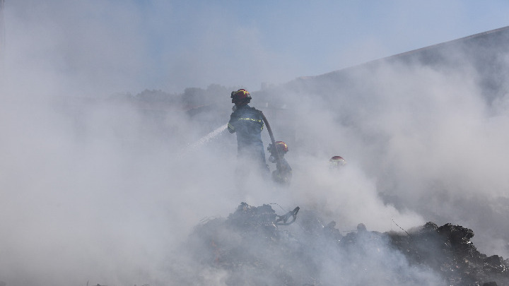 Όπως δήλωσε στο Αθηναϊκό-Μακεδονικό Πρακτορείο Ειδήσεων ο διευθύνων σύμβουλος εταιρείας «Ανακύκλωση Αιγαίου», Παναγιώτης Σινιόρος, «κάηκαν ανακυκλώσιμα υλικά προερχόμενα στη συντριπτική τους πλειοψηφία, πάνω από το 80% τους, από μπλε κάδους. Δυστυχώς, υπήρχε αποθηκευμένο υλικό προς ανακύκλωση περισσότερο απ’ ό,τι συνήθως λόγω των δυσκολιών μετακίνησης αυτό το διάστημα φορτηγών από και προς τον Πειραιά και στη συνέχεια προς εργοστάσια ανακύκλωσης. Πάντως, οι τελευταίοι εργάτες έφυγαν χθες, Δευτέρα, μετά την ολοκλήρωσης της διαλογής, μετά τις 6 το απόγευμα και φεύγοντας κατέβρεξαν τα υλικά».