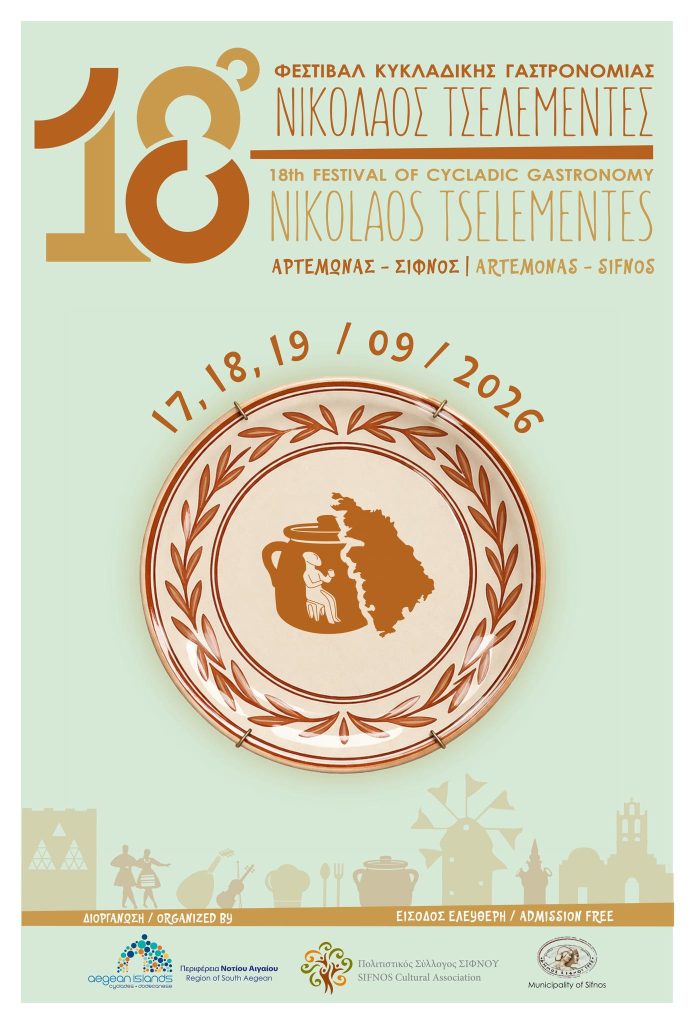 Με επίκεντρο τη γαστρονομία, την παράδοση και τον πολιτισμό, η Σίφνος ετοιμάζεται να φιλοξενήσει για ακόμη μία χρονιά το Φεστιβάλ Κυκλαδικής Γαστρονομίας «Νικόλαος Τσελεμεντές», το οποίο θα πραγματοποιηθεί στις 17, 18 και 19 Σεπτεμβρίου, προσελκύοντας επισκέπτες από την Ελλάδα και το εξωτερικό.