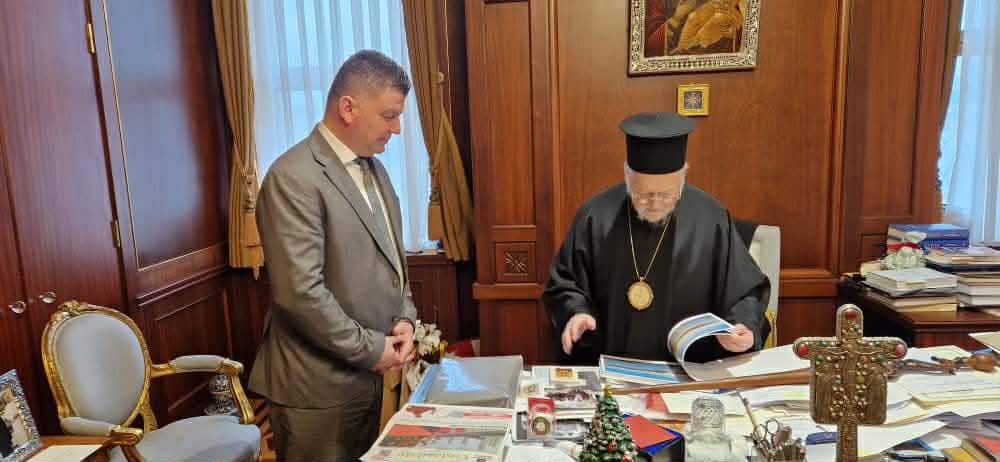Σημαντική συνάντηση με έντονο συμβολισμό για την Πάτμο πραγματοποιήθηκε στο Φανάρι, όπου ο Δήμαρχος του νησιού Νικήτας Τσαμπαλάκης συναντήθηκε με τον Οικουμενικός Πατριάρχης Βαρθολομαίος, παρουσία και του Μητροπολίτης Ζάμπιας Ιωάννης. Η συνάντηση έλαβε χώρα στο Οικουμενικό Πατριαρχείο Κωνσταντινουπόλεως και διεξήχθη σε ιδιαίτερα θερμό και εγκάρδιο κλίμα, με ουσιαστική συζήτηση γύρω από θέματα που αφορούν το παρόν και το μέλλον του νησιού της Αποκάλυψης.