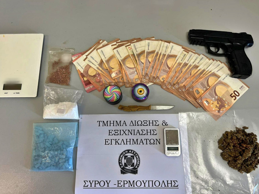 Συνελήφθησαν προχθές (Σάββατο 21 Ιουνίου 2025) στη Σύρο, από αστυνομικούς του Τμήματος Δίωξης και Εξιχνίασης Εγκλημάτων Σύρου – Ερμούπολης, τρείς ημεδαποί ηλικίας 19, 24 και 38 ετών ( 2 άνδρες-1 γυναίκα) σε βάρος των οποίων σχηματίστηκε δικογραφία για κατοχή – διακίνηση ναρκωτικών ουσιών κατά συναυτουργία και οπλοκατοχή.